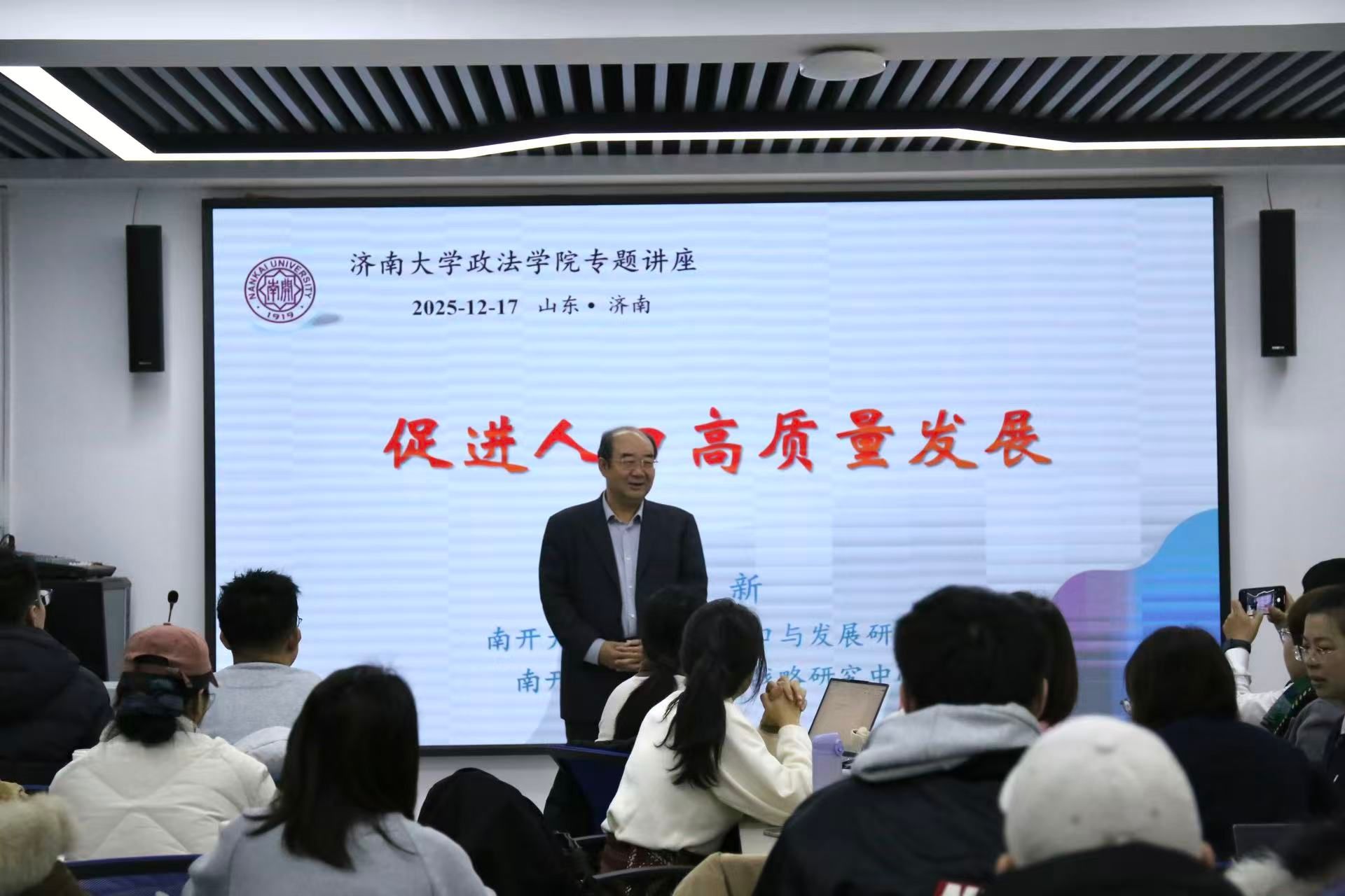 12 月17日上午,自慰视频 青龙山学术论坛在第四教学楼413教室顺利举行。本次论坛特邀南开大学经济学院人口与发展研究所教授、老龄发展战略研究中心主任原新作“促进人口高质量发展——深入促进贯彻学习党的二十届四中全会精神专题讲座”,讲座由自慰视频 院长高功敬主持,七十余名师生参加。