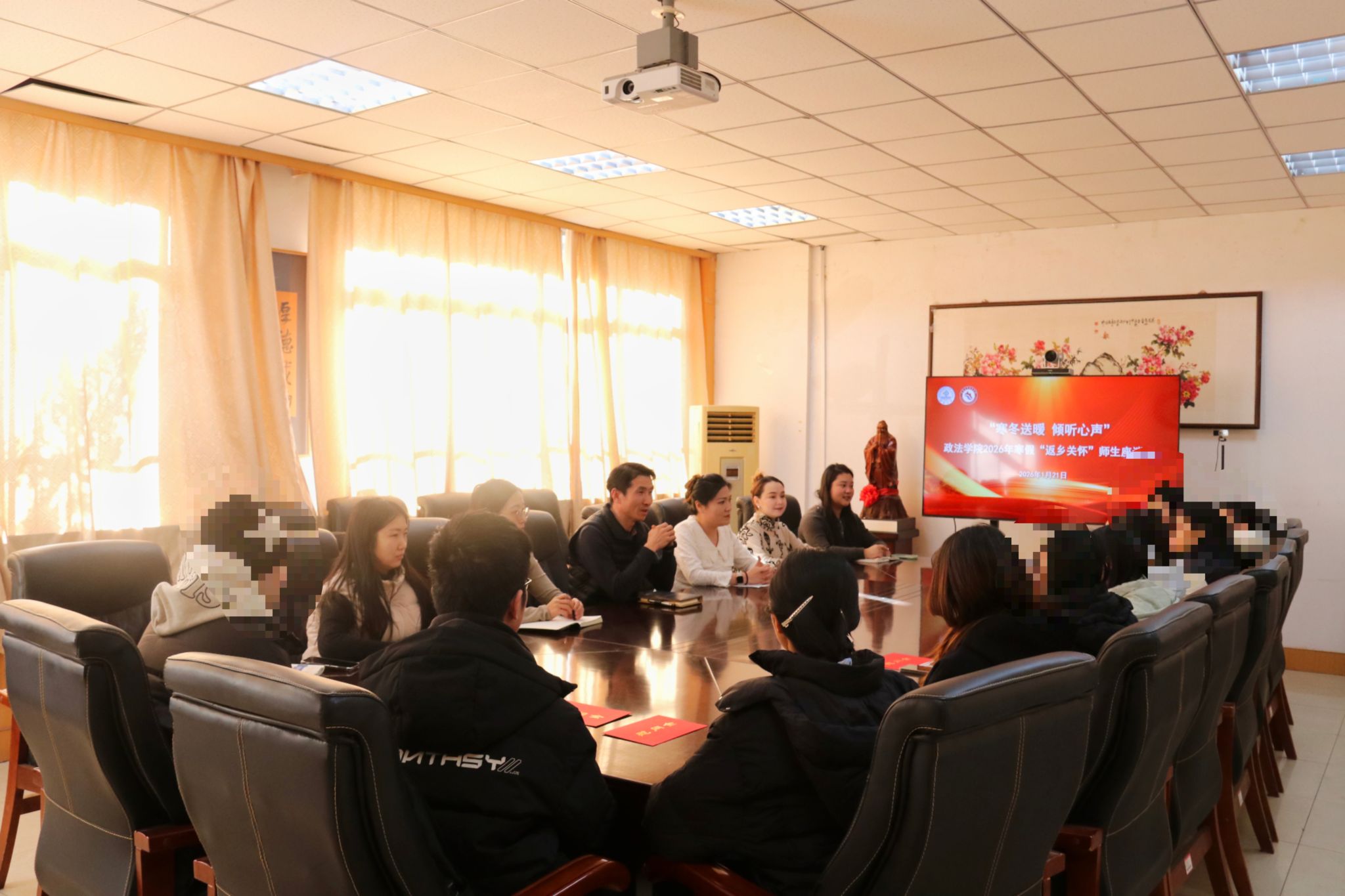寒假返乡前夕,学院组织“寒冬送暖 倾听心声”返乡关怀座谈会,邀请学生代表分享成长感悟与困惑。会上,同学们感恩多方资助使其安心求学,辅导员详细解读育人政策,鼓励大家勤学笃行。学院领导勉励学子保持乐观坚韧,扎实学业,常怀感恩,勇担时代责任。座谈会以“面对面”交流传递温暖,增强了学生的归属感与前行动力。