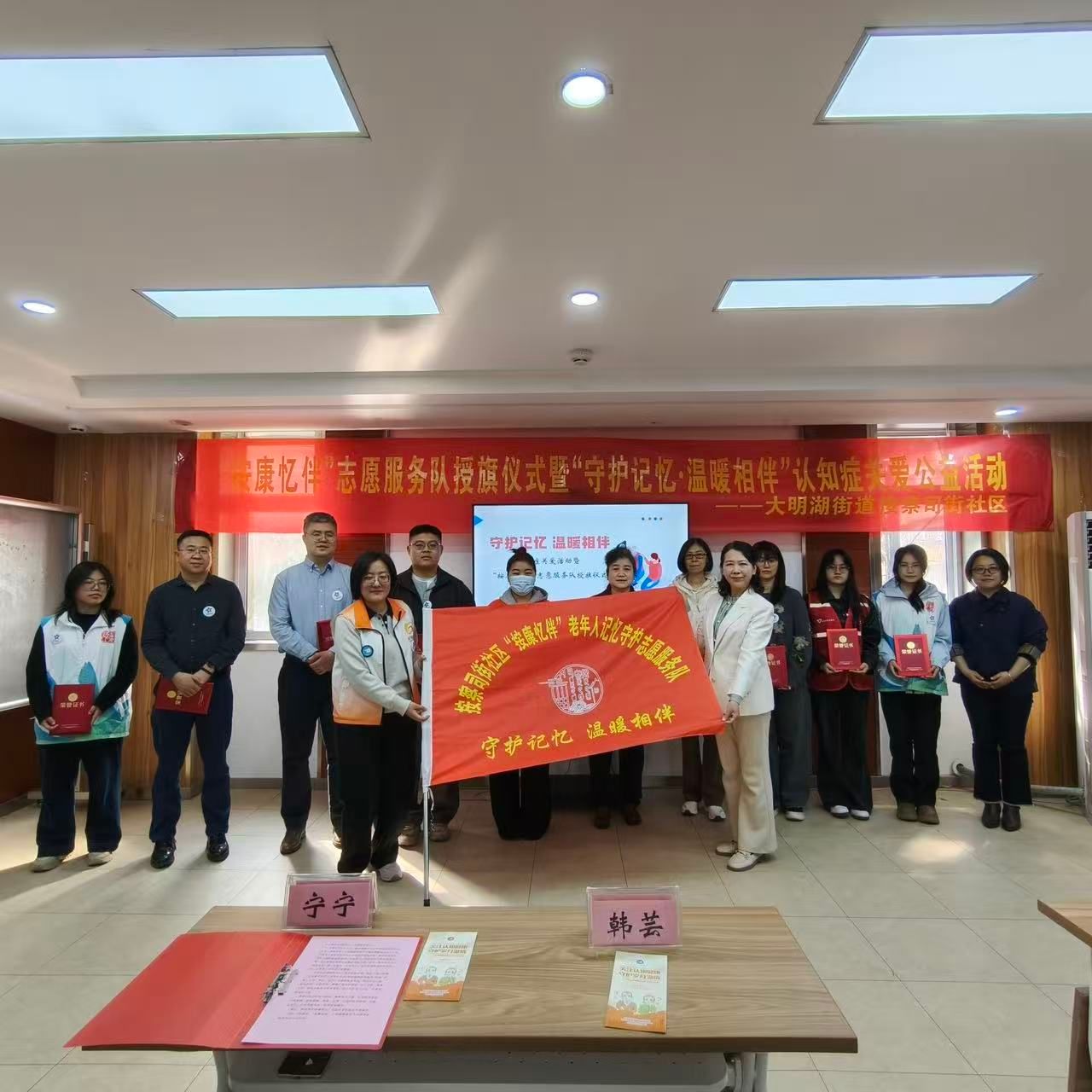 活动伊始,大明湖街道党工委委员、人大工作室主任宁宁发表致辞。致辞结束后,授旗颁证仪式顺利举行。宁主任为“按康忆伴・记忆守护”志愿服务队代表授旗,标志着辖区认知症关爱志愿服务队伍正式组建。自慰视频
