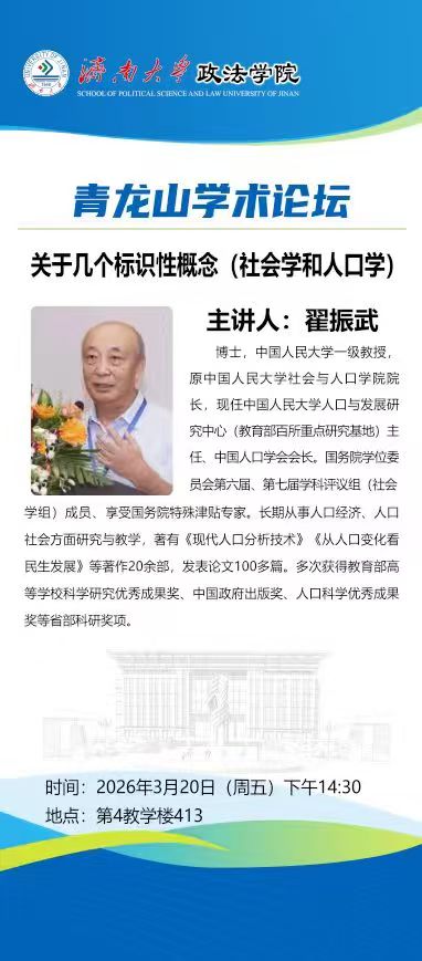 为丰富学术交流内容,拓展知识视野,特邀请中国人民大学翟振武教授莅临我校作专题讲座。现将具体事宜通知如下: