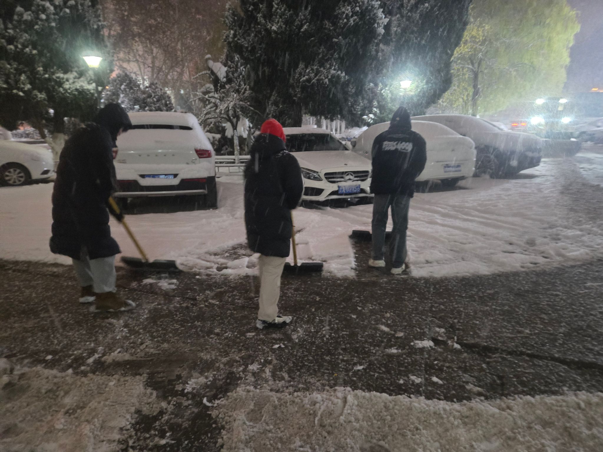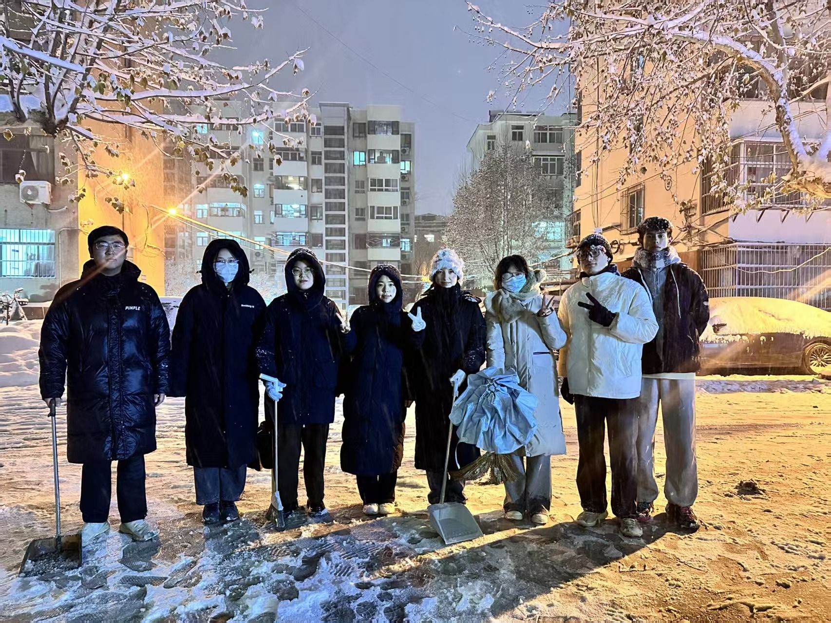 师生闻令而动、迅速部署,组建起一支以党员骨干和学生干部为主的志愿服务队,带领同学们投身清雪一线,用切实服务践行责任,以劳动身影诠释担当。
