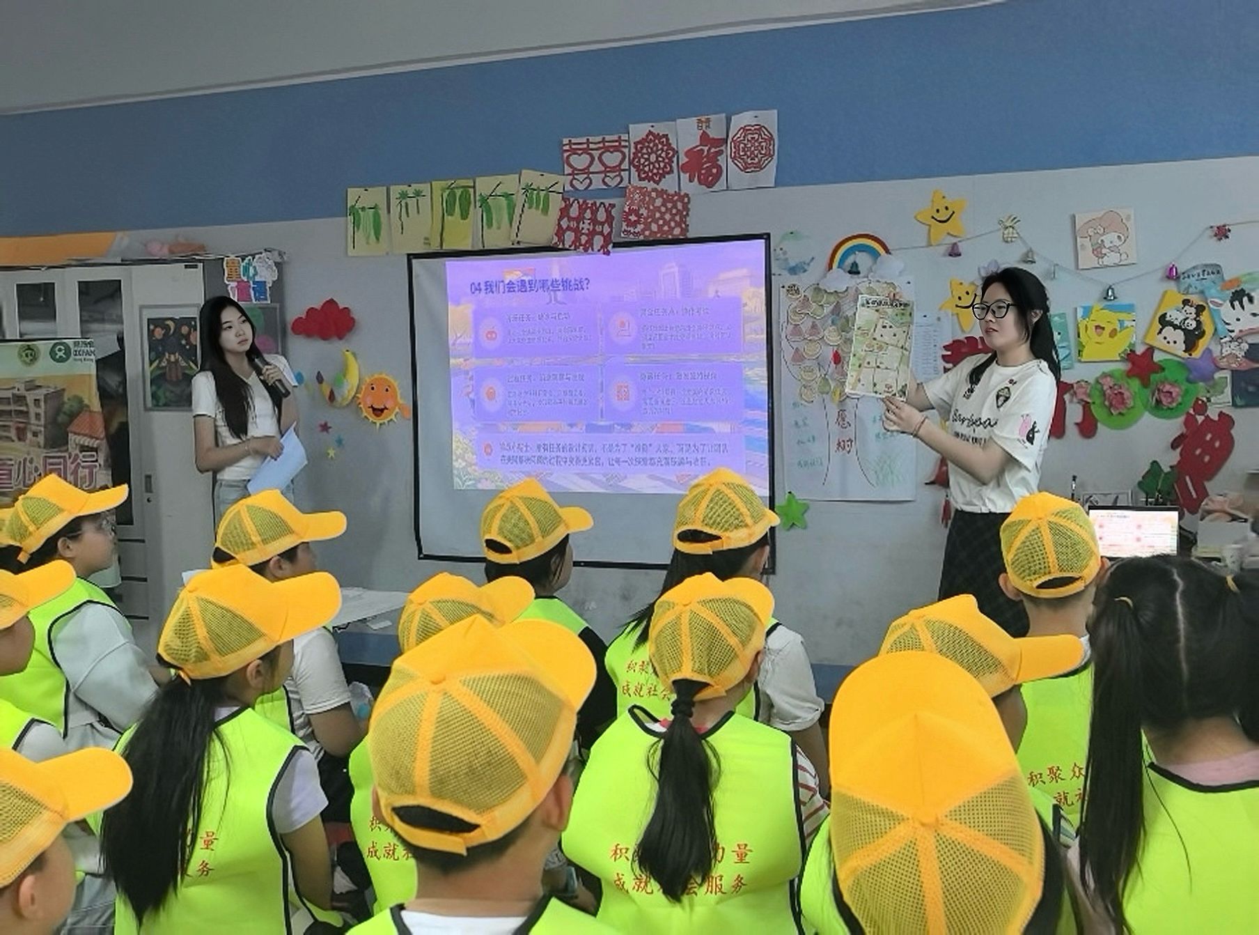 23级社工实习生承担核心组织与专业支持工作,为36名大学生志愿者开展儿童沟通、安全应急、小组带领、情绪支持等专项培训,并以带队引导、点位统筹、安全守护、专业支持等分工,保障活动规范有序、温暖落地。